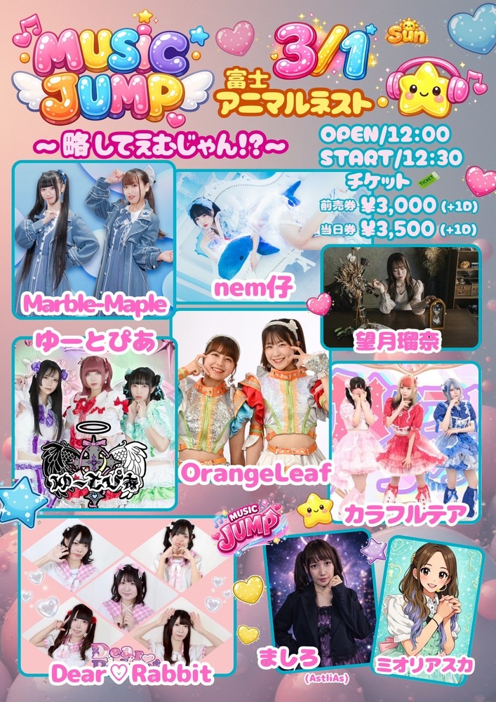 富士アニマルネストライブ イベントスケジュール 2026/03/01(日) 富士アニマルネスト OrangeLeaf 14:40~15:00 Instagram、XのDMにてご予約受付中! 物販あり URLをコピーする 報告する